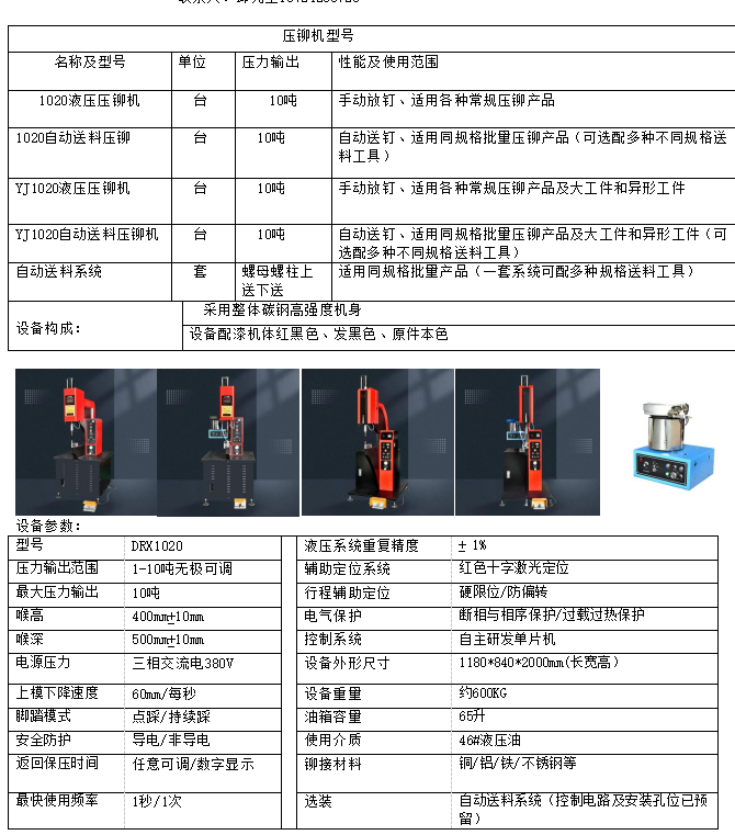 DRX1020压铆螺柱自动送料压铆机
